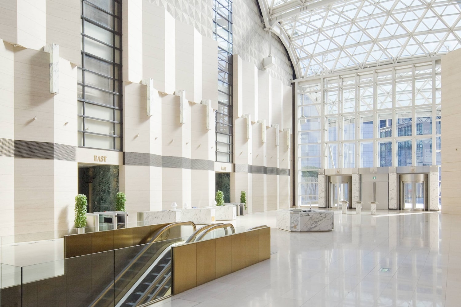 大手町のオフィス街の中でもサンクンガーデンやアトリウムなど、特徴的なツインタワー内にある会議室です。入場もセキュリティゲートを使用するため、安全で快適な環境。