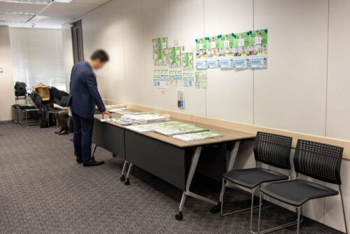配布資料の設置はもちろん、壁面がマグネット対応のためポスター類の掲出も自由に行えます。