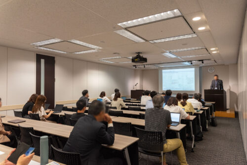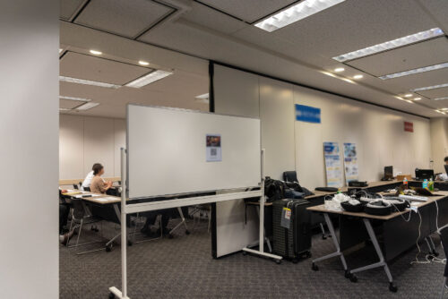 RoomBとRoomCを一部可動壁で間仕切り、RoomBを展示会会場、RoomCをセミナー会場としてご利用いただきました。