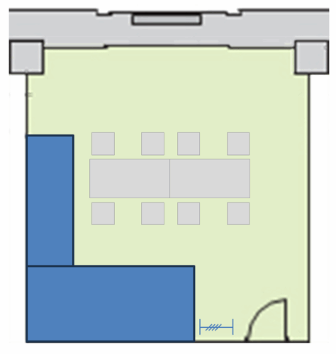 RoomB:展示会会場(会議机で6つのブースを設置)